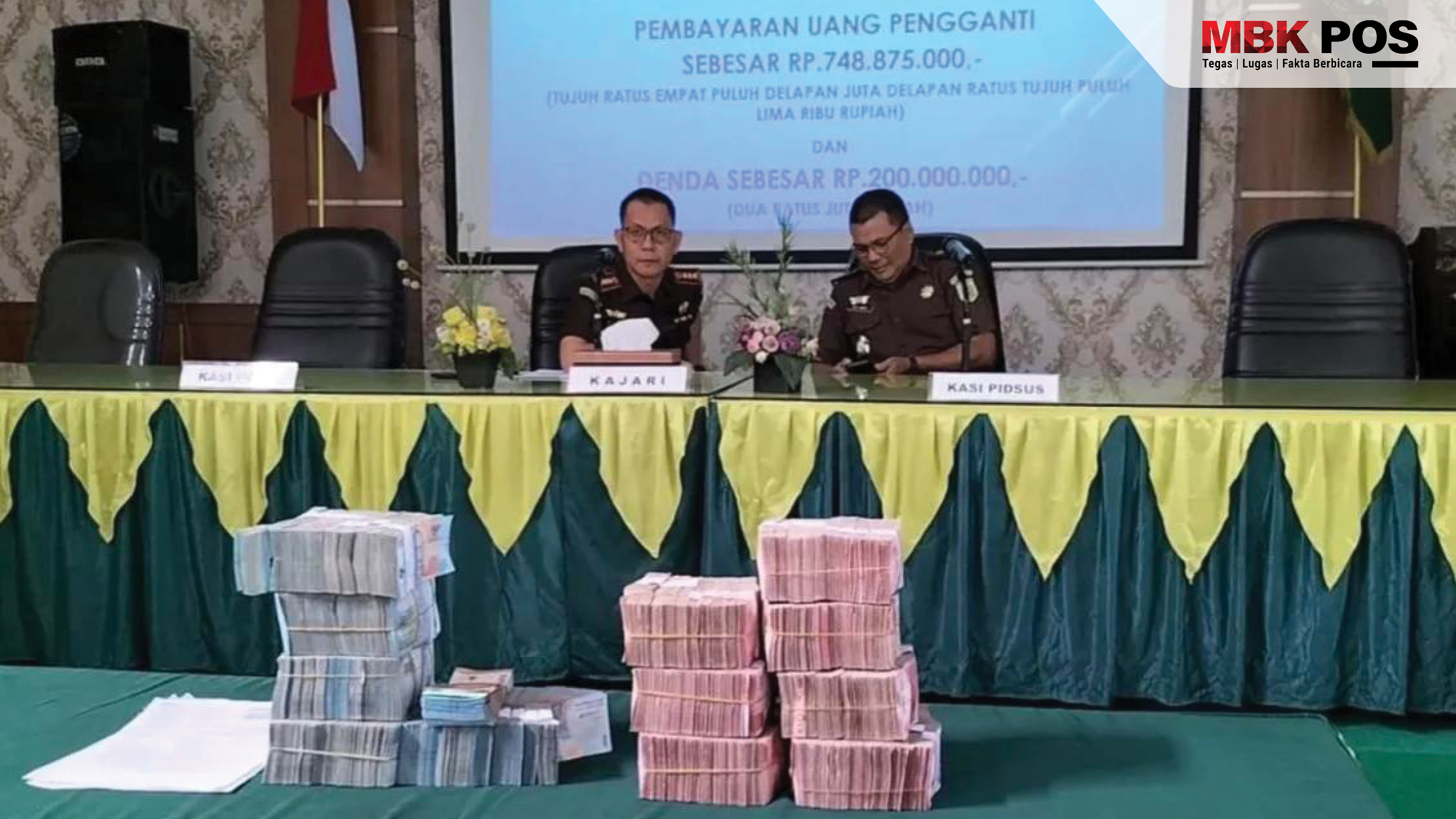 “Uang ini secara resmi telah kami terima dari terpidana hari ini, selanjutnya langsung disetorkan ke kas negara lewat pihak BRI,” jelasnya
